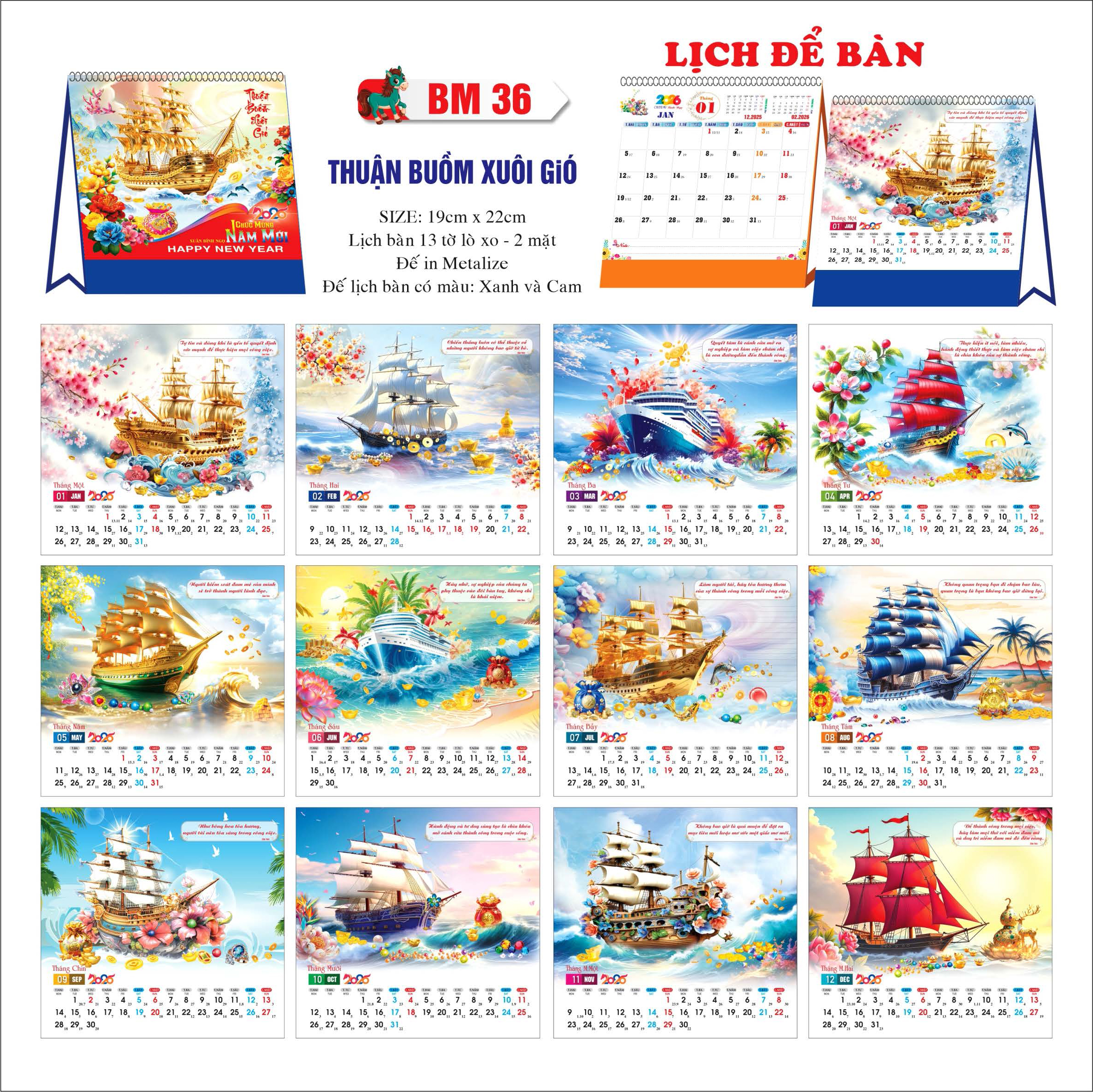 Lịch để bàn cao cấp 2025 (Không có note)