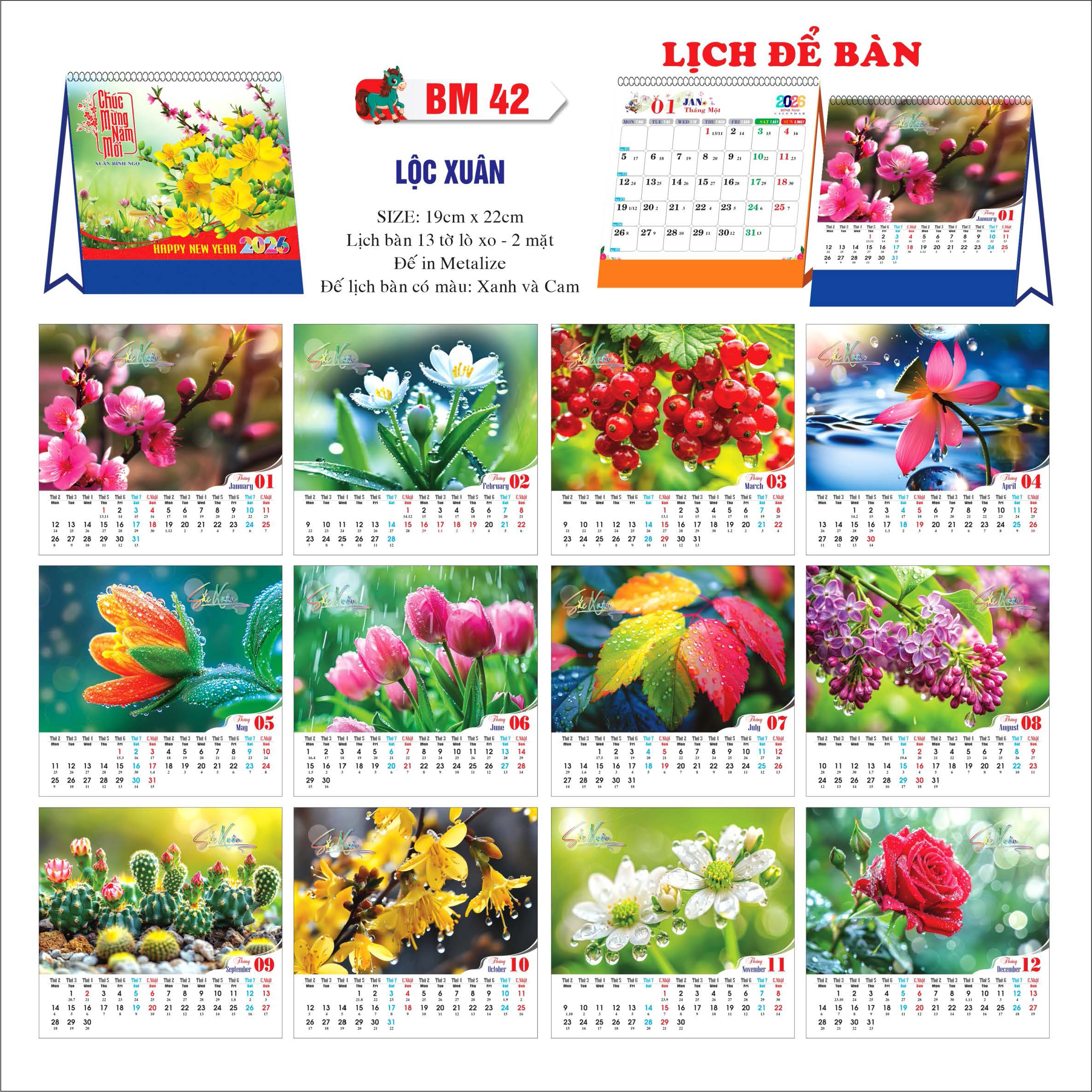 - Đế lịch : có sẵn 3 màu XANH - ĐỎ - CAM